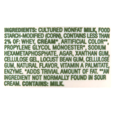 Make it your signature topping or secret ingredient in sauces and cakes. Fat Free Sour Cream reviews nutrition label product images allergens trace. It tastes exactly like sour cream with a fraction of the fat and calories.